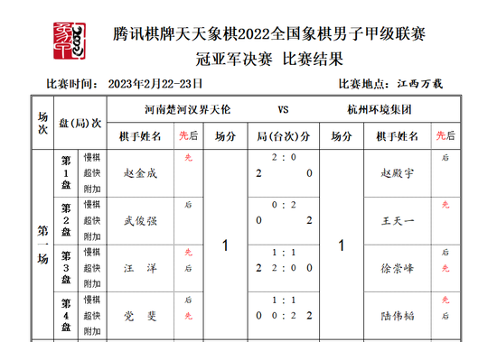 明寰宇午两点,两队将进行第二场对决。谁能成为象甲联赛新的王者?敬请热心。