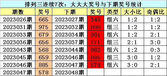 上期转头:枚举三2023047期奖号为:578。类型:组六,奇偶:奇奇偶皇冠体育博彩,大小:大大大。