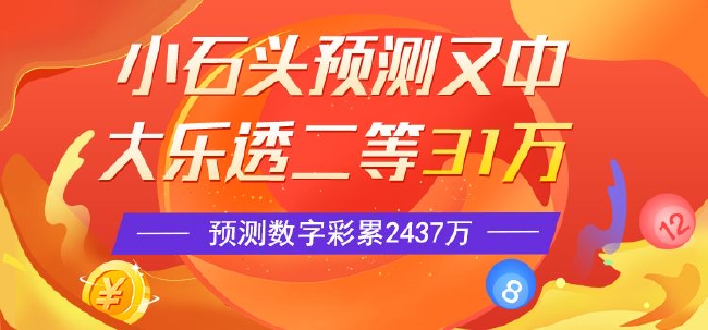 小石头大乐透:上期瞻望中二等奖31万,周日又中双色球头奖711万,景色特地火热!入驻平台以来,先后11次瞻望射中数字彩大奖,统率奖金2437万!周一最新决策已出,值得不竭温和![检察当天推选]