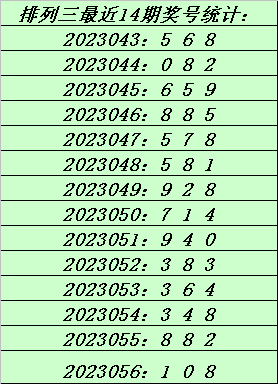 上期回来:陈列三第2023056期奖号:108。和值9,跨度8。
